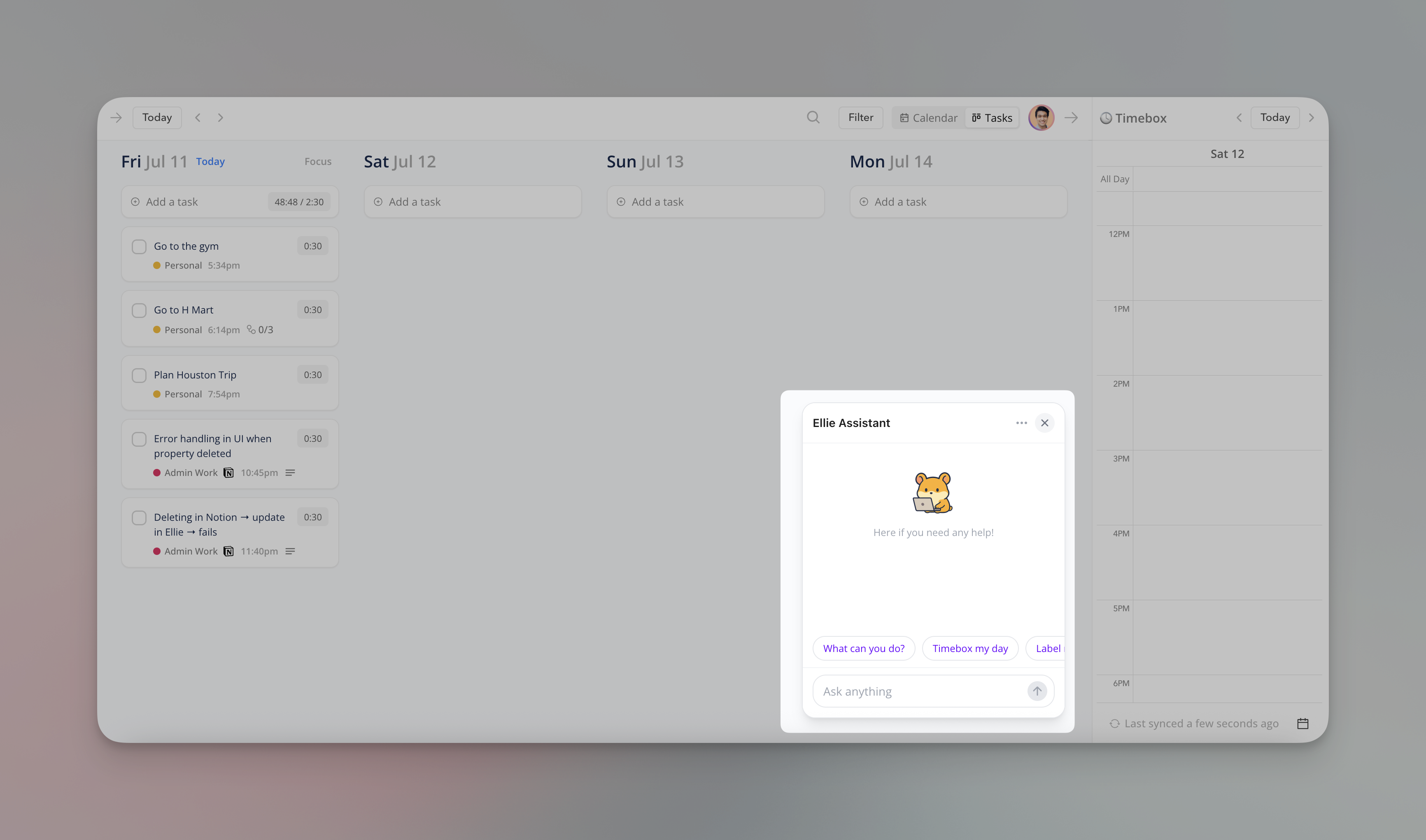 Ellie's AI Assistant helps you manage tasks, organize your schedule, and stay on top of your daily planning: all through natural conversation.